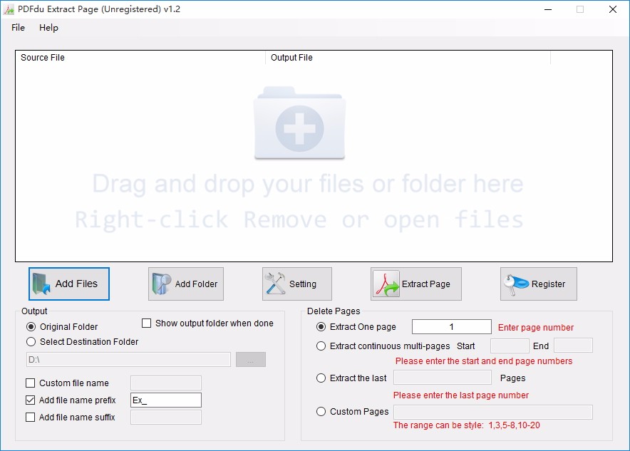 支持拖放功能,可直接拖放PDF文件进行页面提取