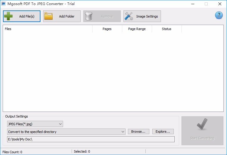 为了享受该应用程序的好处,用户首先需要选择他们要处理的文件或文件夹。他们可以浏览到自己的位置,也可以将所需的文件拖放到Mgosoft PDF To JPEG Converter的主窗口中。