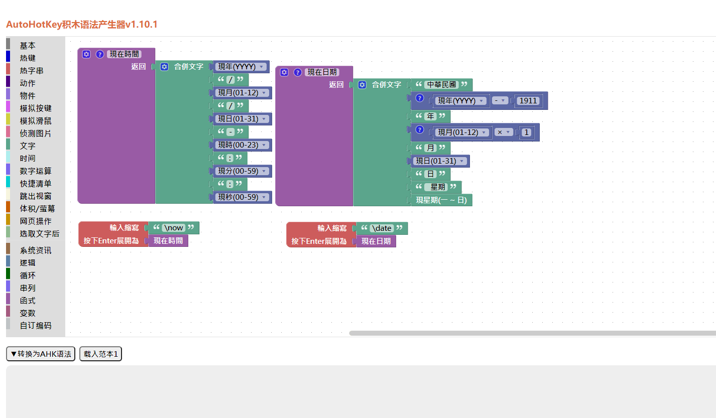 可以使用Google Blockly的拼图引擎撰写制作AHK脚本。