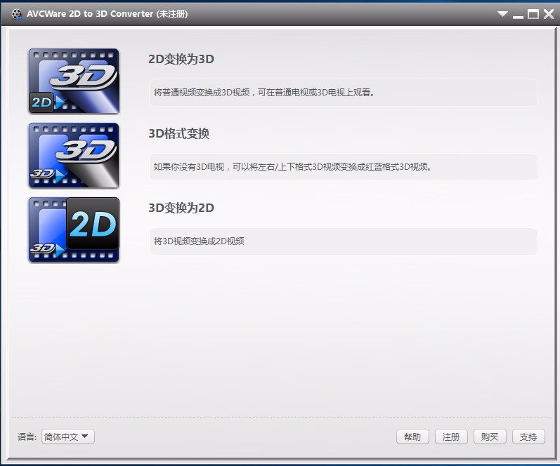 Converter是一款非常简单且实用的2D转3D视频转换器,使用该软件可帮助用户快速将MP4、MOV、AVI、WMV等多种标准的2D视频格式转换与输出为3D视频格式,从而能够在3D设备上欣赏视频,整个的2D转3D视频转换操作非常简单,导入需要的2D视频文件,随后选择输出的3D格式,设置显示分辨率、文件名、输出目录、预置方案等,一键即可进行转换,除此之外还支持3D格式转换以及3D转2D功能,总的来说该软件为用户提供了简单的2D转3D视频转换方案,欢迎有需要的用户下载体验