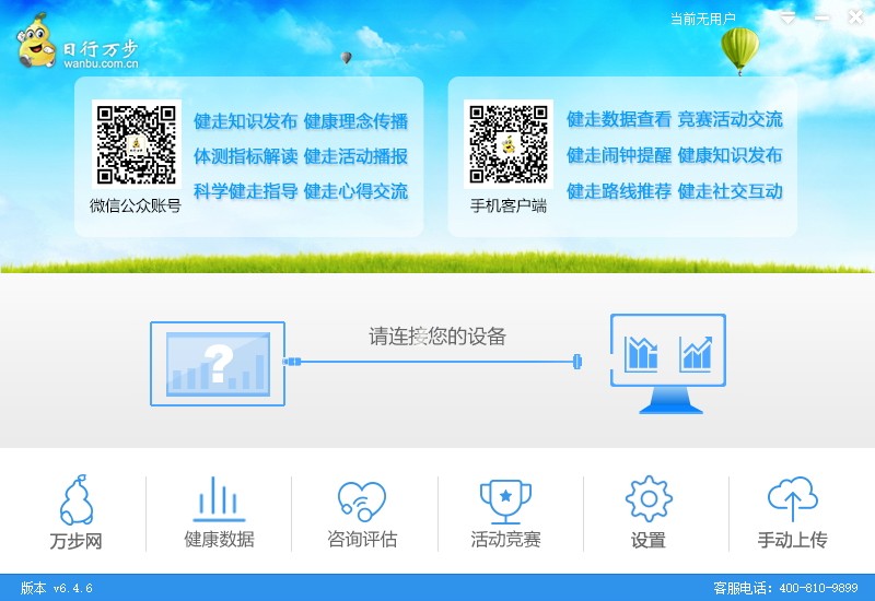 万步网数据上传工具简称万步网,是一款功能强大、简单专业的全能计步器上传软件,内置万步网、健康数据、咨询评估、活动竞赛、设置、手动上传等多种功能控件,点击即可实时了解万步网官方动态以及身体健康数据,可以进行网络咨询评估以及走路步数竞赛等操作;万步网数据上传工具功能丰富齐全、专业实用,能够轻松方便的上传数据到计步器中,通过该软件用户能够更好地管理万步网中的数据,用户只需完成软件账号登录和设备连接即可使用,有需要的朋友可以自行下载。