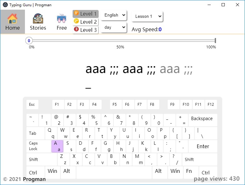 Typing_Guru是一款专为电脑初学者而设计研发的键盘打字练习软件,内置标准的键盘打字规范提示,可帮助初学者如何快速提高打字速度,该软件支持多语种打字模式,适合各国电脑初学者使用,通过该软件用户可以循序渐进地提高个人打字速度;Typing_Guru界面简洁直观、操作简单便捷,具有极强的兼容性,支持Linux和Windows操作系统安装运行使用,内置字母打字练习、短句打字以及自由练习三种模式,用户可以结合个人实际情况选择相应的打字模式,从而更有效地提供打字水平。