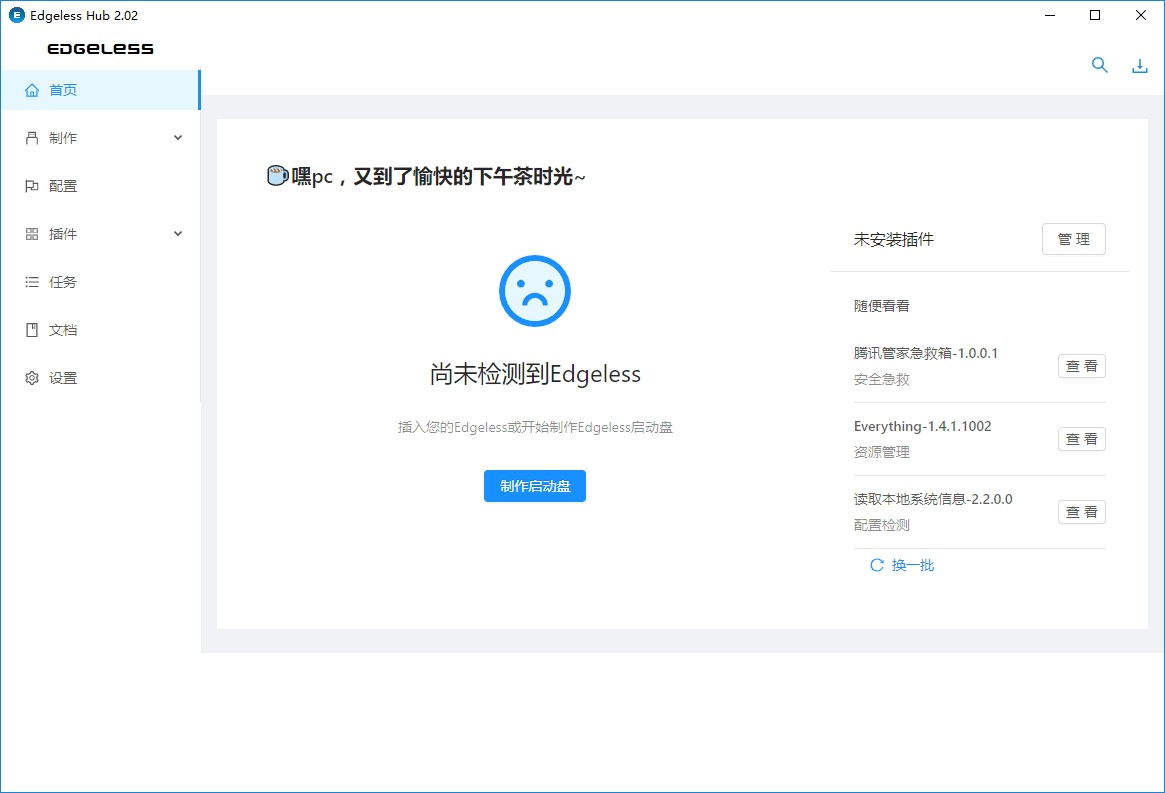 3、进入U盘制作首页可以查看检测到的edgeless,可以对肝脏插件进行管理等操作