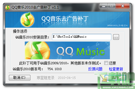 2010.04.15 v1.1 改进去广告功能,支持QQ音乐2010。