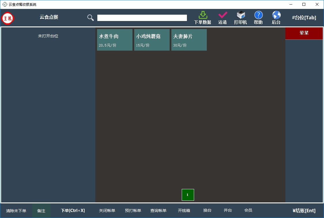 3、完成软件登录注册即可进入云点餐收银系统收银管理操作界面
