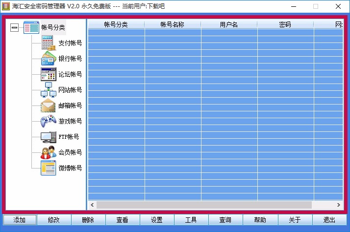 12、账号分类,可添加、修改、删除账号类型