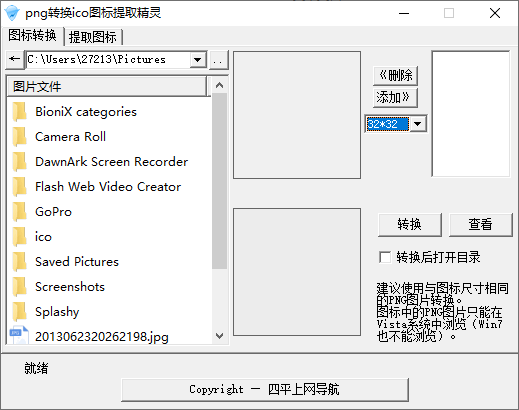 2、它支持将PNG图片转换ICO图标。