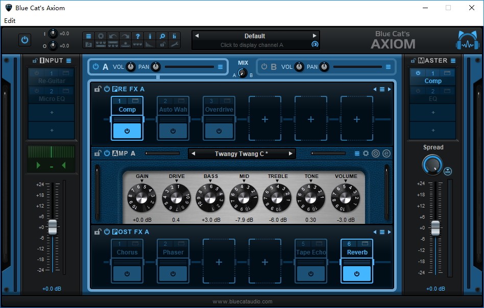 Blue Cats Axiom是一款功能强大、简单专业的吉他多效果处理器和放大模拟软件,基于著名的析构函数插件amp模拟开发,可为用户提供专业高效的音调调节环境,该软件拥有两个amp模拟通道,可以混合在一起或像真实场景一样交替使用;Blue Cats Axiom功能丰富、专业实用,内置数百个音调放大器模型预设,可方便用户启动放大器编辑器并建立自己的音频调节方案,该软件内置多种音频处理解决方案,支持多个插件安装,是一款非常优先专业的音频放大模拟器软件,有需要的用户可以下载使用