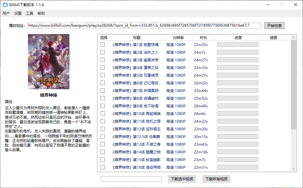 7、粘贴番剧的播放链接,它就会自动检索该番剧的所有剧集并提供下载。