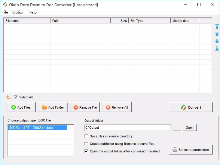 Okdo Docx Docm to Doc Converter还可将每个输出文件放在单独的文件夹中,这在将文档分成多个部分时特别有用。