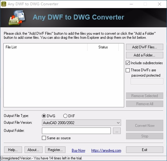 支持拖放功能,可直接拖放需要的DWF文件进行转换