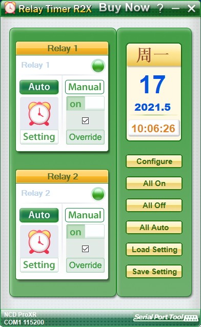 Relay Timer R2X中文名为继电器定时器,是一款体积轻量、简单易用的可编程定时器软件,使用这款软件用户可以轻松便捷地对继电器定时功能进行设置,可连续检测并显示连接状态,适用于带有串口、USB和网络接口的中继板;Relay Timer R2X继电器可通过单独的控制面板手动和自动打开/关闭,同时更新和显示继电器的当前状态,该软件支持自定义的时间表设置,可让用户更灵活便捷的控制继电器,继电器可以由其他计算机远程控制,同时还支持设置为登录窗口后自动运行,非常的简单方便,有需要的朋友可以下载使用。