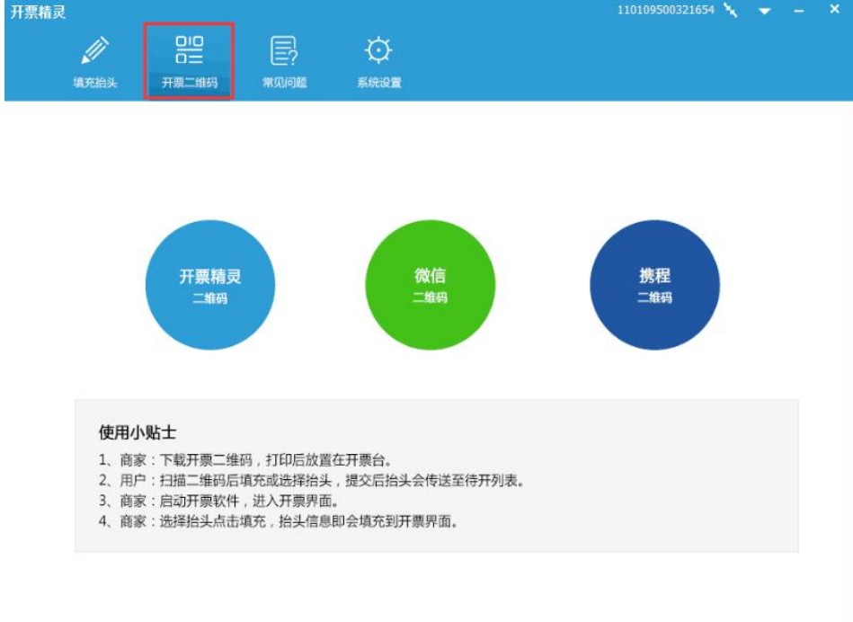 2)商家打开开票精灵,选择开票二维码(三种可随意选择)