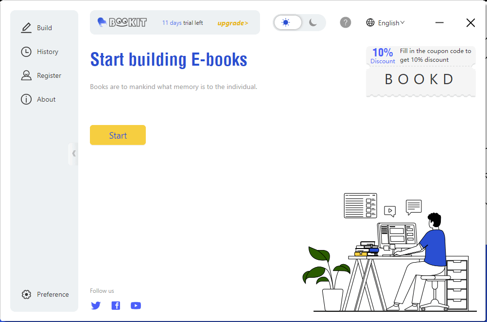 我们建议您注册一个帐户并享受许可的副本。如果您使用的是试用版,则服务期限为10天,并且生成的书本上还会有水印。