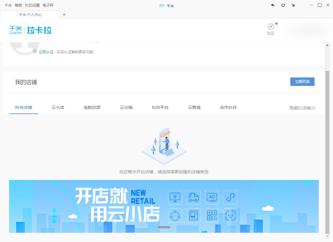 5、完成软件登录注册即可进入千米商城店铺管理界面