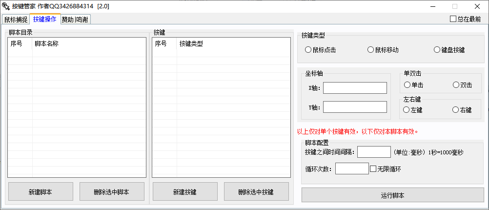 5、在按键操作界面中,左侧是软件的脚本目录界面,您可以在此新建和管理脚本。