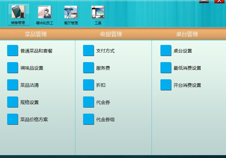 1、kiosk系统图片及开单服务费等设置,进入 收银后台 —— 工具 —— 自助点餐机设置
