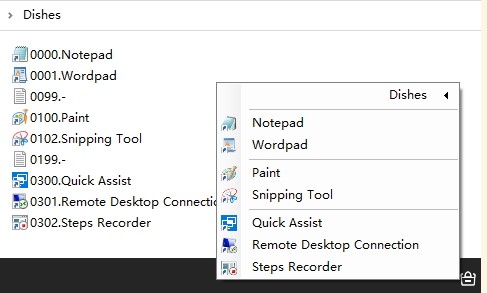你可以把任何快捷方式、批处理或是可执行文件放进这个文件夹,点击 Dishes -> Refresh 刷新后,它们就会出现在 Dishes 的右键菜单里。