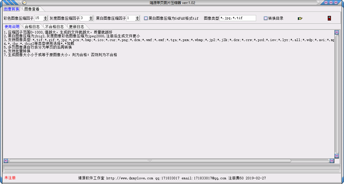 靖源单页图片压缩器是一款简单好用的图像压缩软件,这款软件拥有一个简洁直观的用户界面,操作方式非常简单;它可以为用户提供专业的图像压缩方案,帮助用户更好的压缩各种图像;它支持批量压缩,用户在设置完压缩参数后就可以添加保存图像的文件夹到软件中进行压缩;靖源单页图片压缩器还是一个很好的图像浏览器,您可以在另外的界面中打开图像并进行浏览,在浏览图片时您可以选择缩放图像或以适合的尺寸显示图像;该工具兼容的图像格式非常丰富,可以满足用户对图像压缩的各种需求。