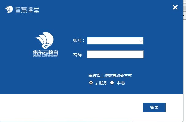 4、进入软件登录界面可以通过转换和密码进行软件登录,同时瑞选择上课数据加载方式