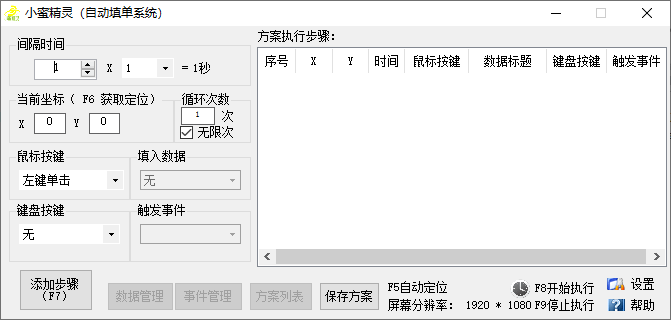 小蜜精灵是一款便捷的自动填单工具,您可以通过设置鼠标和键盘来完成某些数据录入工作;一些数据录入工作是枯燥乏味的,往往用户对这类重复性的工作并不会产生太大的兴趣,因此工作的效率也随之降低;这款小蜜精灵不仅可以释放用户的双手,降低用户的工作量,最重要的是这款工具可以在很大程度上提升用户的工作效率;它能够让用户按时完成工作,甚至是超额完成工作;小蜜精灵简单易用,是一款高效的办公辅助工具,需要的朋友赶紧下载使用吧。