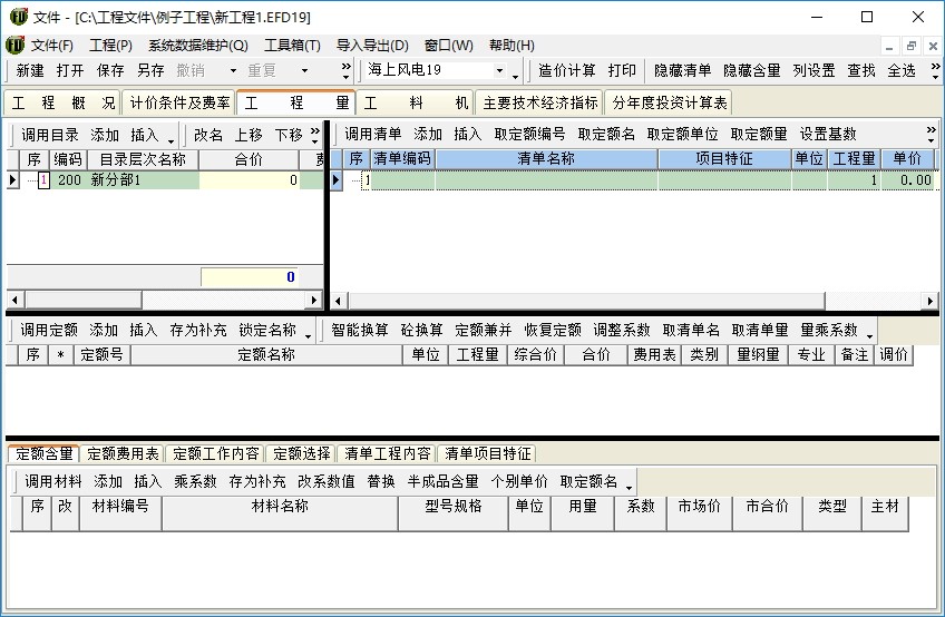 软件安装后,在地区单价的默认列表中,有一个基期单价:风电19基期材料价。