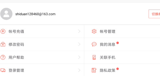 3、出现账号页面后,点击右边的切换账号。