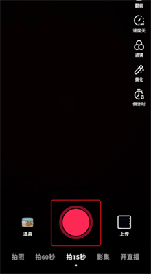 1、打开抖音点击中间加号,随机录制视频或上传视频。