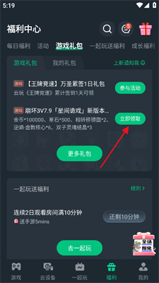 3、找到想要领取的礼包点击【立即领取】即可。