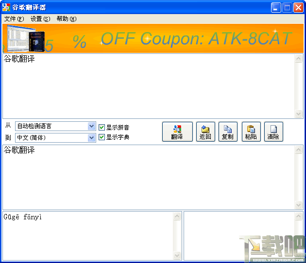 谷歌翻译桌面版(中英文翻译器下载)是一款小巧绿色的在线翻译软件,谷歌翻译器利用谷歌翻译API进行在线翻译,谷歌翻译器不但是一款谷歌英文翻译器,同进也是多语言翻译器,可以对52种语言进行互译。有了它您再也不用为了翻译而打开庞大的浏览器到谷歌翻译页面去进行操作了,您只需复制或录入即可得到翻译结果,还可以翻译大段的文字内容,快速、高效、简便、是一款装机必备绿色软件。