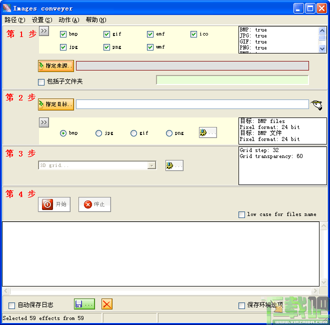 Images Conveyer是一款图形格式转换工具,只要4個步驟就能輕松轉換成指定的格式,並且提供50種不同的效果可搭配使用,支持格式如:BMP、EMF、GIF、JPG、ICO、PNG、WMF。