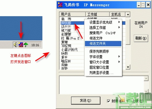 下载吧提示您:如果您的系统中安装有防火墙,运行飞鸽时请运行飞鸽程序访问局域网,否则会看不到局域网内其他飞鸽成员。