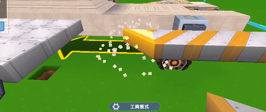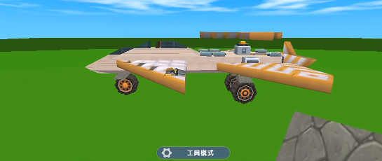 在引擎两边安装转轴方块和机翼,制作飞机的后半部分时,放置航天推进器和铰链方块。