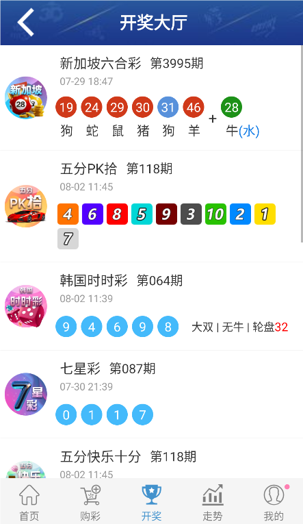 2、除了查看走势图以外,还可以通过开奖等内容查看最新的中奖结果。