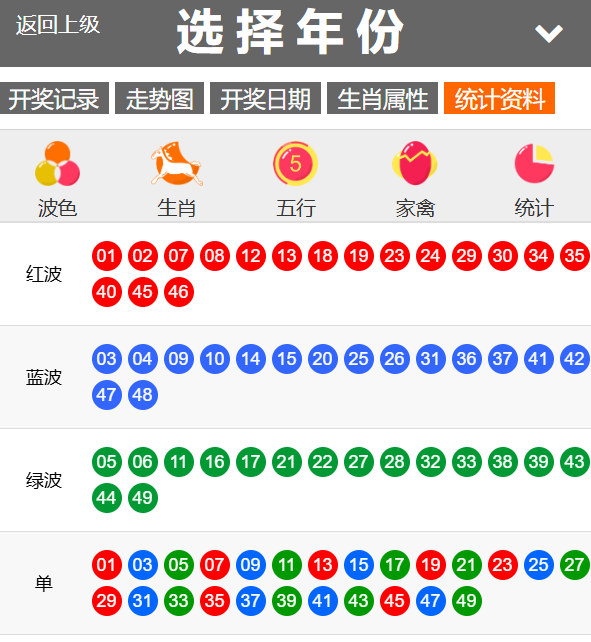 2、进入开奖详情页,选择对应的年份,以及顶部的玩法模式。