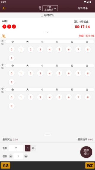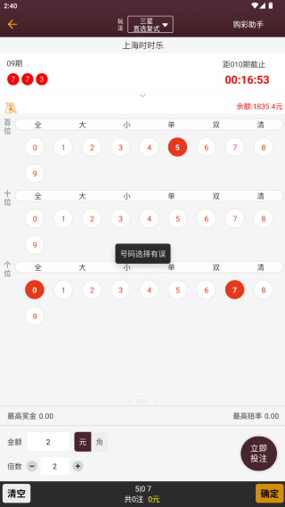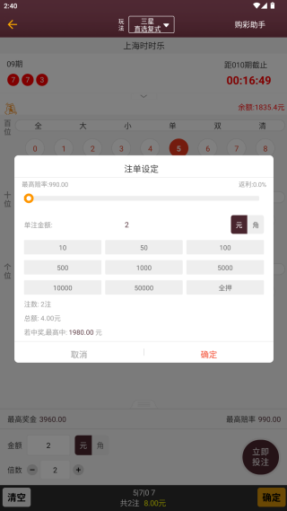 5、选择好之后就可以点击确认,当倍率不同的,最高中奖金额系统也会给出提示;