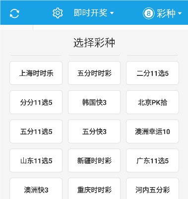 2、右上角的彩种,可以选择想要查看的彩票种类,涵盖了全网的所有玩法模式。