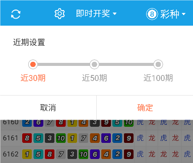 3、顶部齿轮设置选项,可以用来勾选查看的期数:30期、50期、100期等。