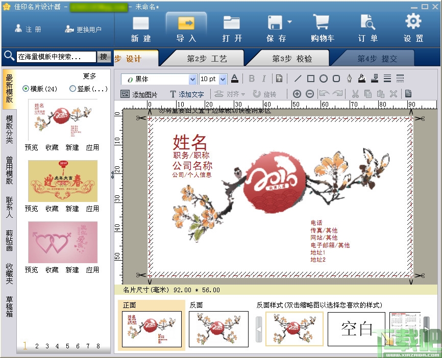 1.新建模板,“佳印名片设计器”中的上千个名片模板,供精心挑选,编辑名片文本信息,随心设计出完美个性的专业名片。