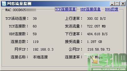 3、详细窗口可以显示上传、下载速率,上传、下载流量、连接名称、连接速率,TCP/UDP连接数;