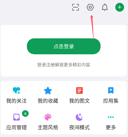 1、进入酷安软件以后,在个人页面顶部找到齿轮设置图标,点击进入。