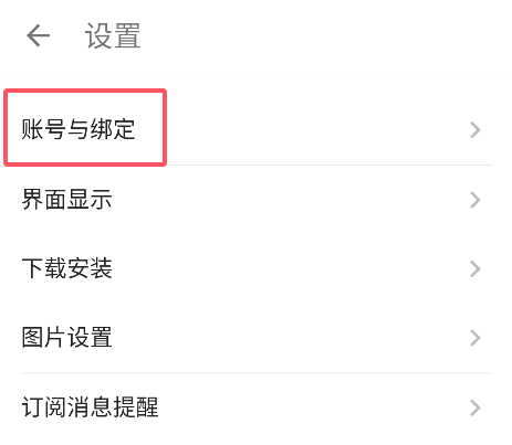 2、进入设置页面以后,找到下方的【账号与绑定】,点击进入。