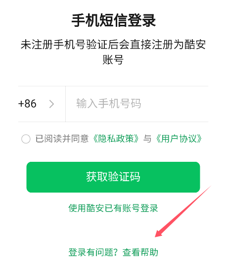 3、没有登录的用户会回到登录页面,点击底部的【登录有问题?查看帮助】。