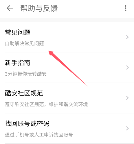 4、进入帮助与反馈频道,找到顶部的【常见问题】。