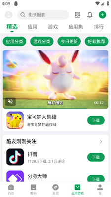 1、打开软件进入【应用游戏】板块。