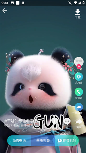 2、点击下方的动态壁纸页面,选择上方的来电视频。