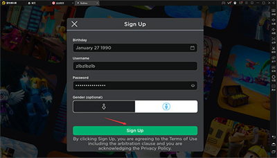1、安装好roblox国际服打开,sign up是注册,log in是登录。