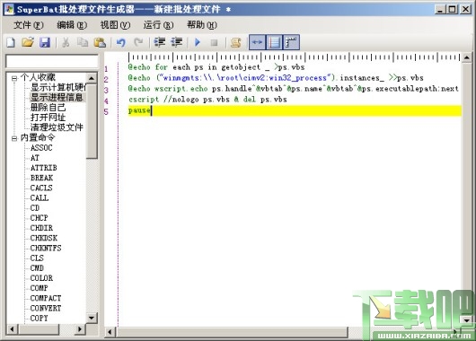 Superbat是用于编写Windows批处理文件的编辑器,可以以代码高亮模式显示批处理代码,并可由用户自行保存各种代码片段以供使用。