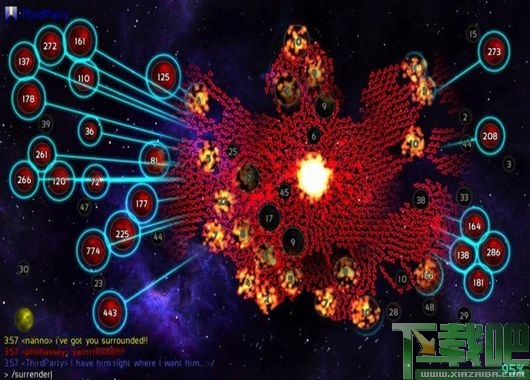 游戏操作十分之简单,全程也是用滑鼠便可以完成,左键点击你的星球,右键点击你想占领或攻打的星球,游戏更设有多个星球同时出兵的设定,只要按死左键,一拉,便会有个大大正方形,包着的那些星球便自动选择了,再按右键出兵,十分方便!还有,出兵数量基本设定为 50% ,你可以利用滑鼠上的滚轮作出调整。