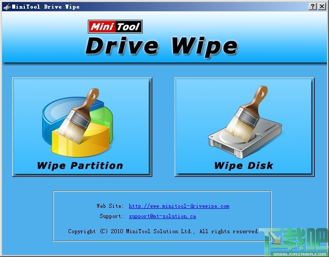 Mini Tool Drive Wipe能永久摧毁磁盘中的文件,使文件恢复软件无法恢复,支持几乎所有媒质的硬盘,如IDE, SATA, SCSI, USB, Fire wire